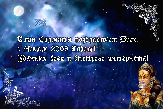 Клан Сарматы поздравляет клан Орден Золотого Грифона с Новым 2009 годом!!! Желаем успехов в игре и реале, сплоченного коллектива и побед в игровых событиях!!!